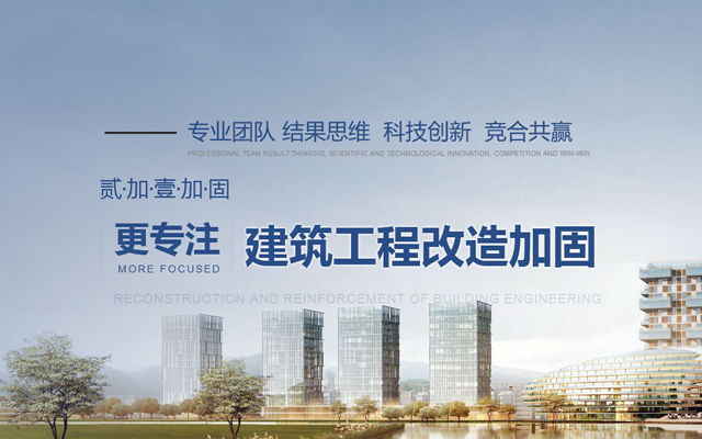 貳加壹 解決方案專業(yè)從事建筑工程改造加固技術(shù)研究及相關(guān)產(chǎn)品開發(fā)的 產(chǎn)業(yè)的公司 提供專業(yè)的加固咨詢、加固方案設計、工程施工服務 。